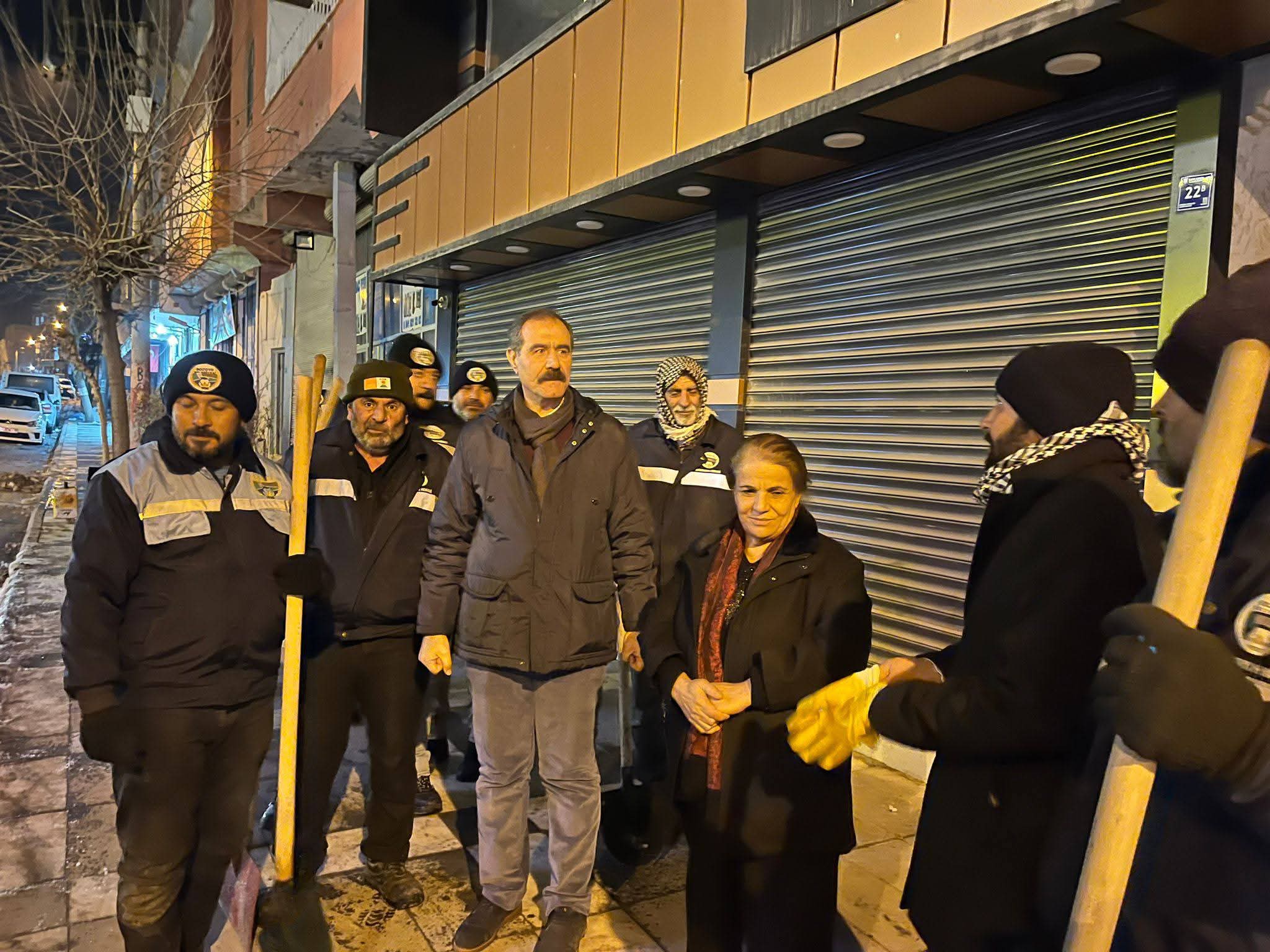 Yürütülen çalışmaları sahada takip eden Eşbaşkanlar Aygül Kapıkayalı ve İsmail Yıldız, Eşbaşkan Yardımcıları Rabia Arslan, Servet Yazar ve İsmail Tutal ile birlikte karla mücadele çalışmalarına bizzat katılarak incelemelerde bulundu. Eş başkanlar, zorlu hava koşullarına rağmen özveriyle görev yapan belediye personeline teşekkür ederek, çalışmaların koordineli ve hızlı bir şekilde yürütülmesinden duydukları memnuniyeti dile getirdi.